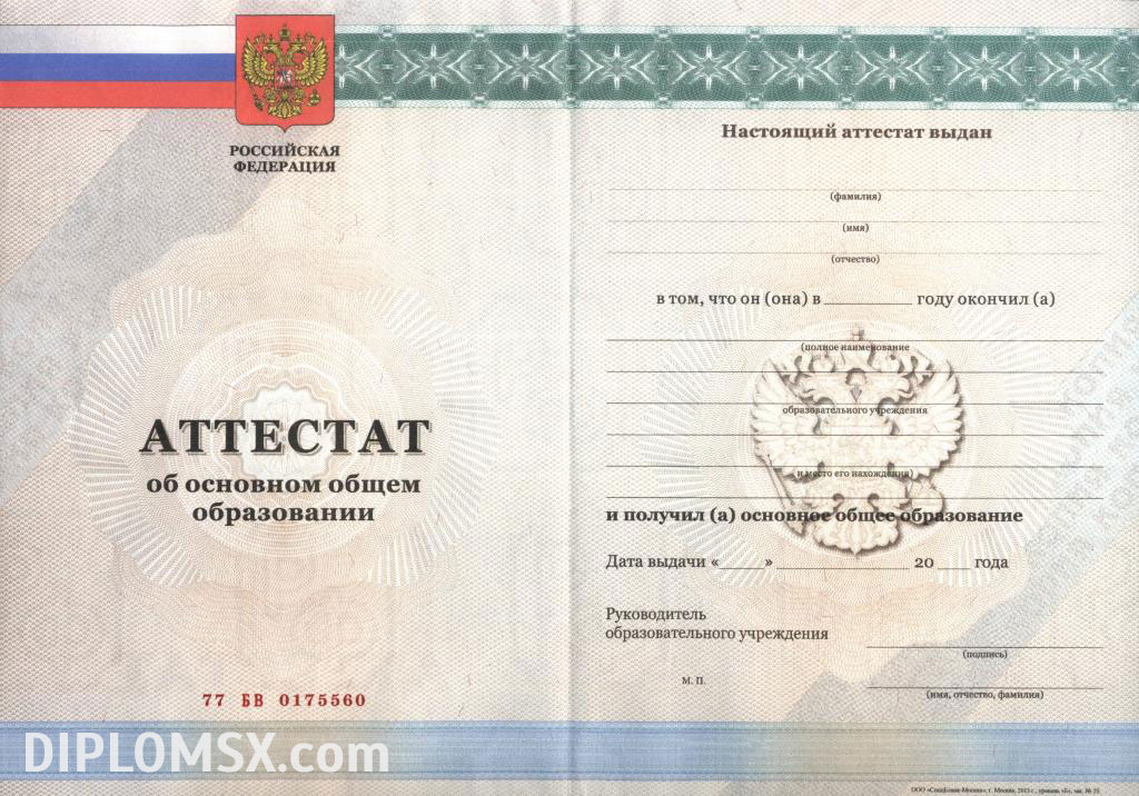 Аттестат о среднем образовании за 9 класс